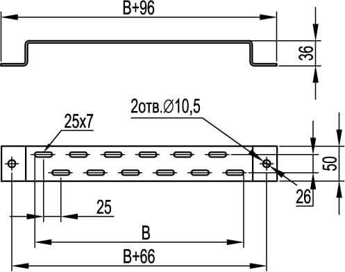 Крепление предназначено для фиксации к стене при вертикальном или напольном монтаже лотков и для организации подвеса на шпильках. Скоба расчитана на лоток ширины до 200 мм.