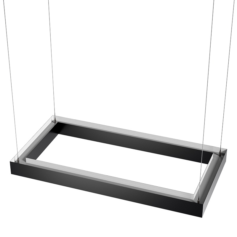 Корпус светильника прямоугольной формы может быть выполнен в черном, белом и сером цветах. Цветовая температура на выбор: теплый цвет (3000К), нейтральный (4000К) или холодный (6500К). Материал корпуса – металл, размеры на выбор. Вариант монтажа – подвесной потолочный.