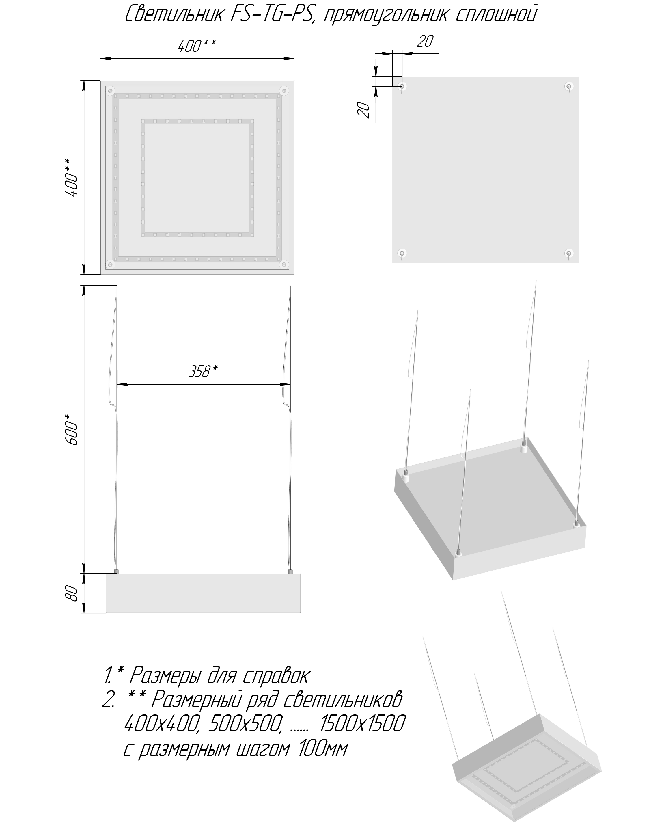 Светильник FS-TG-PS, прямоугольник, сплошной