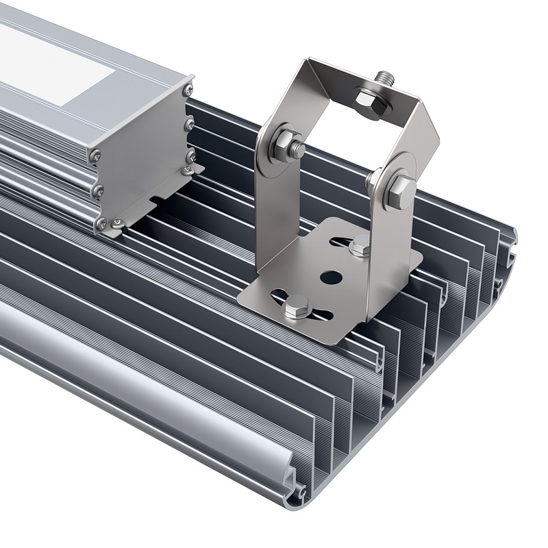 Корпус светильника изготовлен из анодированного алюминия, не подвержен коррозии. Легкое крепление с помощью рым-болтов, возможна замена на тросовые подвесы.